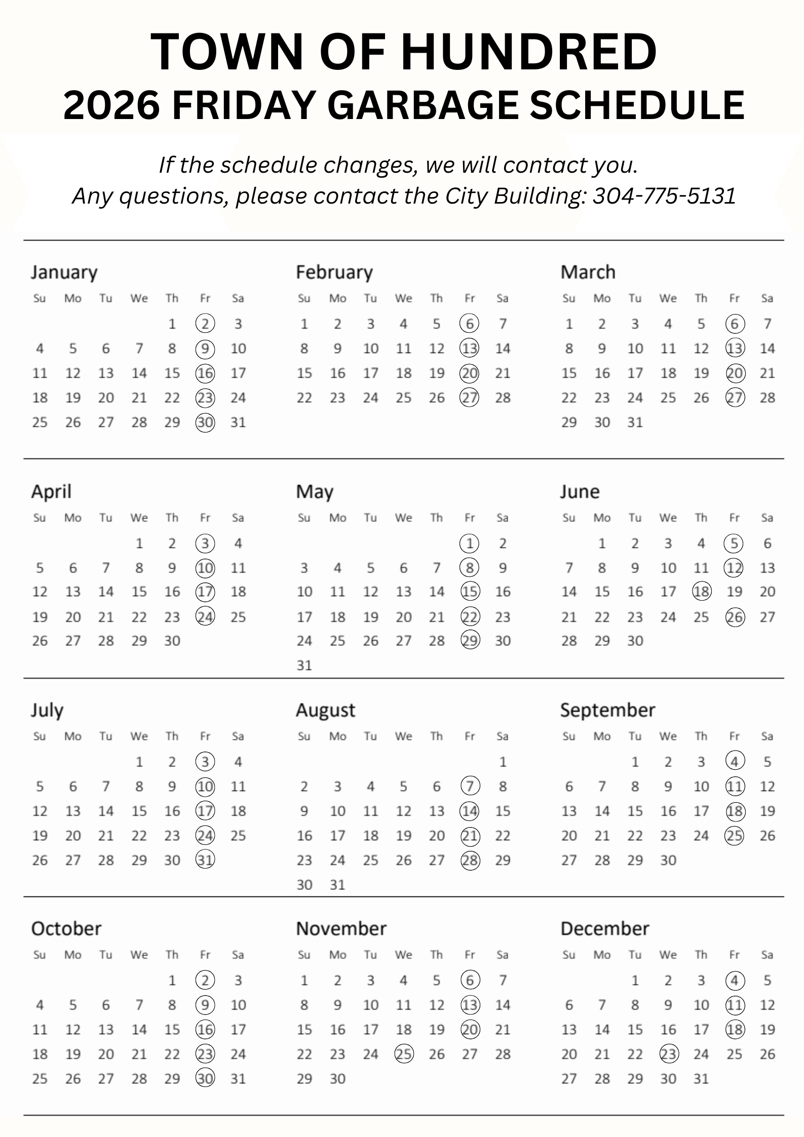 Trash will be picked up EVERY Friday, with the following EXCEPTIONS:
